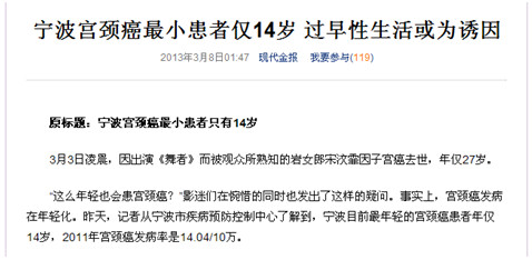 14女孩确诊宫颈癌 专家提醒